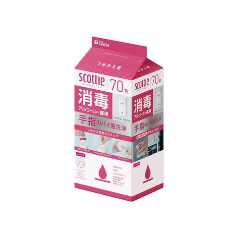 【指定医薬部外品】クレシア スコッティ ウェットティシュー 消毒アルコール つめかえ用 70枚