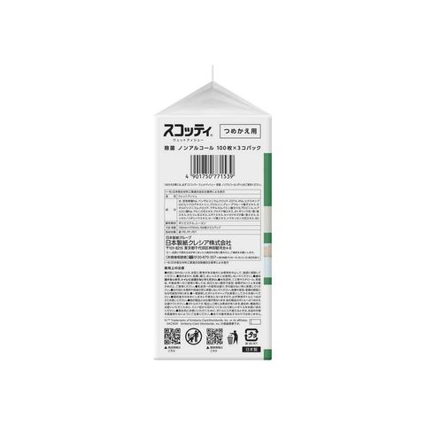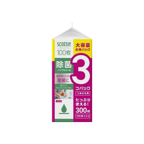 クレシア スコッティ ウェットティシュー 除菌 ノンアルコール つめかえ用 100枚×3コパック