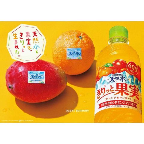 天然水、オレンジ、きりっと、きりっと果実、オレンジジュース、サントリー、マンゴー、みかん、飲料