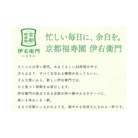 どこか懐かしい味わいで気持ちを緩めてくれる京都福寿園、伊右衛門玄米茶