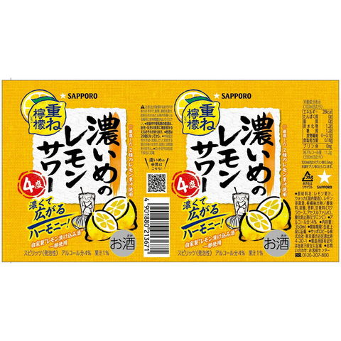 サッポロ、サッポロビール、チューハイ、レモンチューハイ、レモン、サワー、レモンサワー、濃いめ、重ね檸檬、お酒