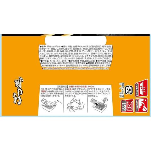 麺130g、旨みとコクのあるブレンドソースに「キユーピーからしマヨネーズ」が付いた大盛ソース焼そば。