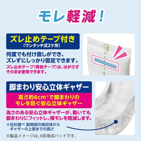 ・脚まわりからのモレを防ぐ「安心立体ギャザー」。