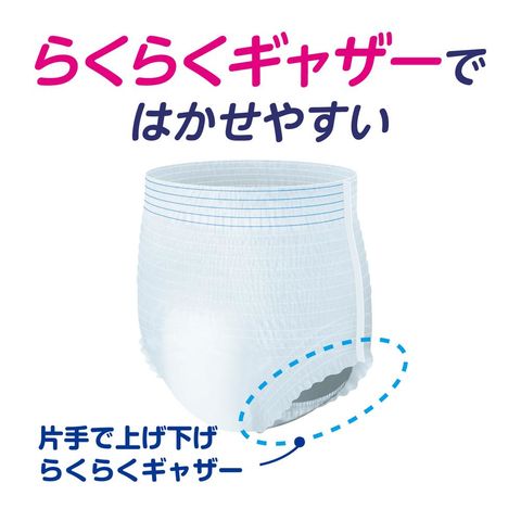 ●新全面通気性シート採用。●「引き込みライン」で尿を素早く引き込んであふれモレを軽減し、逆戻りが少なく、表面さらさら。●おなかまわりがやわらかく快適なはき心地。●脚まわりのゴムの伸縮性が高いので、片手でするっと簡単装着。●消臭加工。