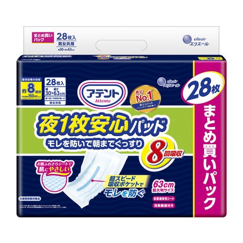 アテント夜安心パッドモレを防いで朝までぐっすり8回吸収 28枚
