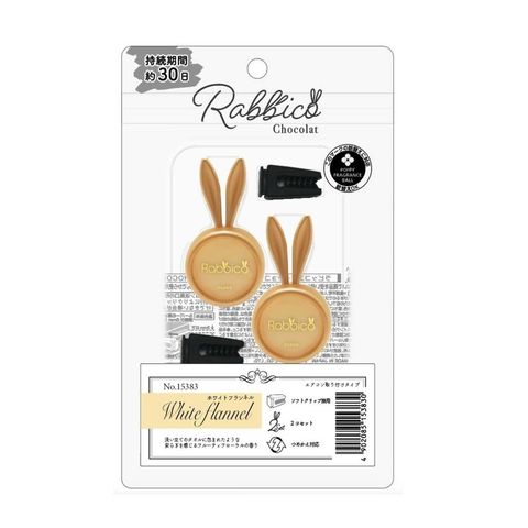 うさみみ芳香剤ラビッコの新シリーズのエアコンルーバー取り付けタイプ。 洗い立てのタオルに包まれたような安らぎを感じるフルーティフローラルの香り。