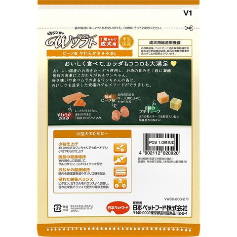 Wソフト成犬用ビーフ味粒・ささみ 200g