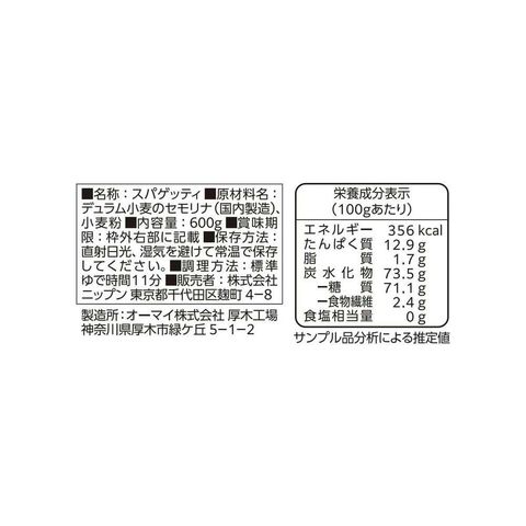 ◆ニップン オーマイプレミアム もちっとおいしいスパゲッティ1.8mm 600g