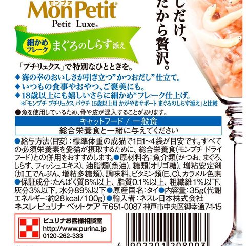 モンプチ プチリュクス パウチ 18歳以上用 かがやきサポート まぐろのしらす添え 35g
