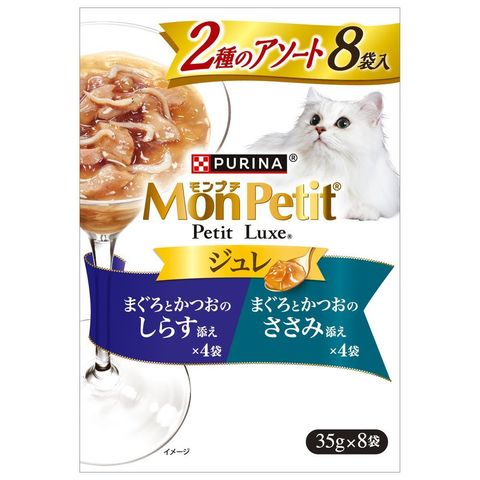 ネスレ日本株式会社 モンプチ プチリュクスパウチ ジュレ 2種のアソート まぐろとかつお しらす添え&ささみ添え 35g×8P