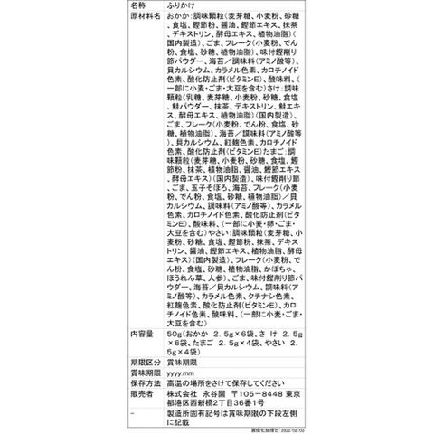 規格:50g(おかか 2.5g×6袋、さ け 2.5g×6袋、たまご 2.5g×4袋、やさい 2.5g×4袋)