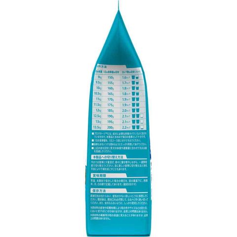 米、チキンミール、とうもろこし、さとうもろこし、コーングルテン、チキンエキス、鶏脂、シュガービートパルプ、家禽類、ひまわり油、イヌリン、トマトパウダー、マリーゴールド、緑イ貝粉末、STPP(トリポリリン酸塩)、ビタミン類(A、B1、B2、B6、B12、C、D3、E、コリン、ナイアシン、パントテン酸、葉酸)、ミネラル類(亜鉛、カリウム、カルシウム、クロライド、セレン、鉄、銅、ナトリウム、ヨウ素、リン)、アミノ酸類(アルギニン、タウリン)、酸化防止剤(BHA、BHT、クエン酸、ミックストコフェロール、ローズマリー抽出物)