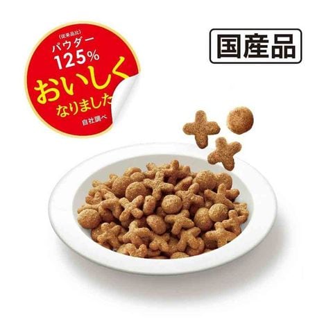 穀類(とうもろこし、コーングルテンミール)、肉類(ミートミール、チキンミール)、油脂類(動物性油脂)、豆類(おから)、魚介類(フィッシュミール:DHA・EPA源、フィッシュエキス)、糖類(フラクトオリゴ糖)、シャンピニオンエキス、セレン酵母、ビタミン類(A、D3、E、K3、B1、B2、パントテン酸、ナイアシン、B6、葉酸、ビオチン、B12、コリン、イノシトール)、ミネラル類(カルシウム、リン、ナトリウム、カリウム、塩素、鉄、コバルト、銅、マンガン、亜鉛、ヨウ素)、アミノ酸類(メチオニン、トリプトファン、タウリン)、酸化防止剤(ローズマリー抽出物、ミックストコフェロール)
