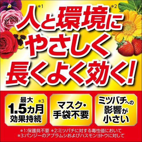 非ネオニコチノイド処方でミツバチにも影響が小さい環境配慮型の製品です。