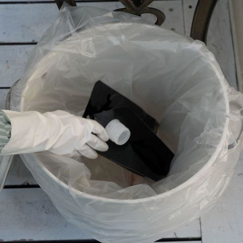 4使用後はシャワーノズルを外して、1で外したキャップをしっかり閉めて、袋を立てて保管してください。(保管時に液が漏れるのを防止するため)