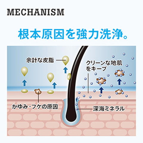 地肌トラブルに届いてはたらく 地肌ケア 薬用シャンプー ◇ 地肌と毛穴に詰まった皮脂をスッキリ落とす ◇ フケ・かゆみを防ぐ、トラブルがある地肌を考えた処方、弱酸性・植物由来成分配合