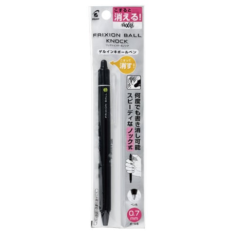 ●ノック式の消えるボールペン「フリクションボールノック」 ●手帳や資料の書き込みにスピーディに使えます。 ●ノック面が大きく、ノックしやすい形状です。 ●<ノックインジケーター>小さな窓から色が現れることで「ON」状態がわかります。 ●こするとインキが透明に。こすっても消しカスが出ません。なんどでも書き・消しが可能。 ●ペン先:0.7mm ●インキ色:ブラック