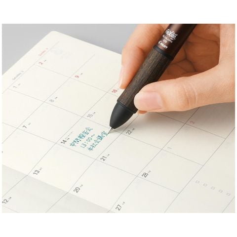 フリクションボール4、ウッド、芯径0.5mm、ブラウン、木軸、スライドレバー、フリクション、こすると消える、消せる