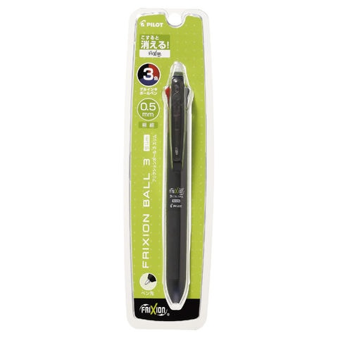 ●3色で書き分けできるフリクションボール3色。 ●黒・赤・青の3色を1本に。会議や打ち合わせなど幅広いシーンに対応。 ●「書いて、消して、また書ける」ペン。後部ラバーで擦った摩擦熱でインクが透明になるフリクションインク。 ●ペン先:0.5mm ●本体色:ブラック ●インキ色:黒・赤・青