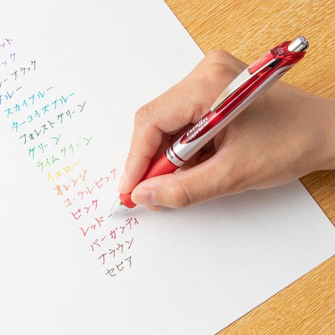 エナージェルインキ採用。軽くなめらかな書き味。ノックしてすばやく書けます。