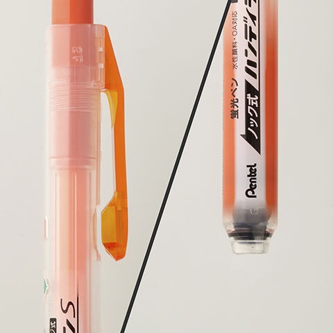 ペン先の出し入れは押すだけ!ノック式だから、キャップを失くすことがありません。