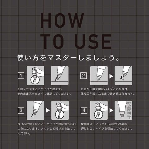 ●芯径0.2mmのシャープペンシル、軸色はブラックです。 ●芯の減り具合に合わせて先端パイプがスライド。芯を守りながら書き進められるから、極細芯でも折れません。 ●ペン先を離すたびに芯が出てくる、ノック不要の「自動芯出し機構」 ●品番:PP3002‐A