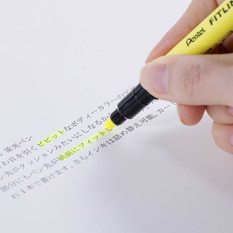 特殊なペン先で線がキレイに引ける蛍光ペン。