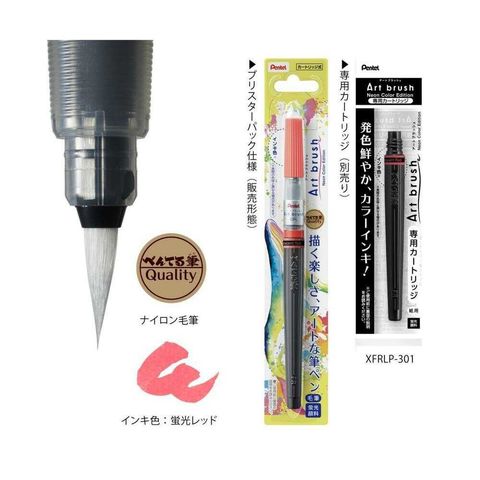 ぺんてる カラー筆ペン アートブラッシュ 蛍光レッド XGFLP-301 1本