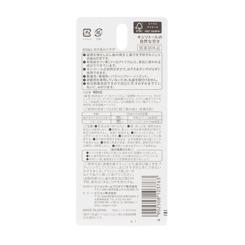 歯みがきデビューにオススメの歯質を強化し虫歯の発生及び進行を予防するジェル状歯みがきです。有効成分フッ素(フッ化ナトリウム)と、食品にも使われる成分でできています。 歯の再石灰化を促進し歯質を強化する有効成分フッ素(フッ化ナトリウム)配合。 虫歯の原因となる酸を作らないキシリトール配合(配合糖類中97%)。 キシリトールの自然な甘さで、お子様が嫌がらずに使用できます。 研磨剤を使用していないので、乳歯を傷つけません。発泡