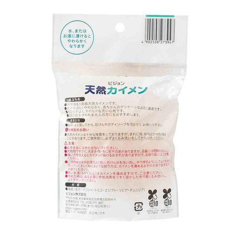 ●天然カイメンは十分な検査をしておりますが、まれに貝、砂などの不純物が残ることがあります。ご使用前に、必ずよくもみ洗いをしてからお使いください。
