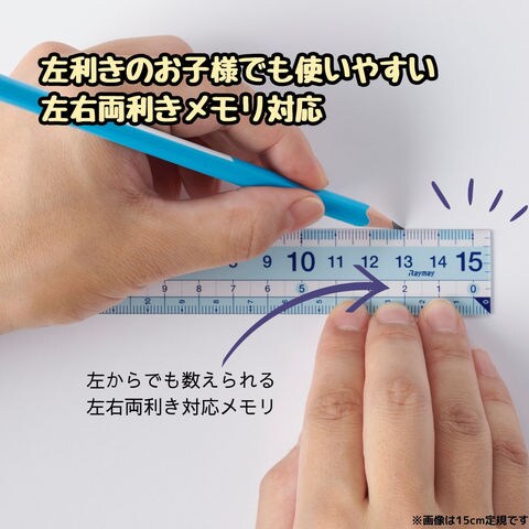 ●学校の先生と共同開発!現場の先生だからわかる、学習しやすい定規シリーズです。 ●握力の弱い子でもおさえやすい。すーっと自然に滑って、指で押さえればぴたっと止まる新感覚の「すべりどめ」付き。 ●対象物に合わせて測りやすい、はし0(ゼロ)メモリも採用。