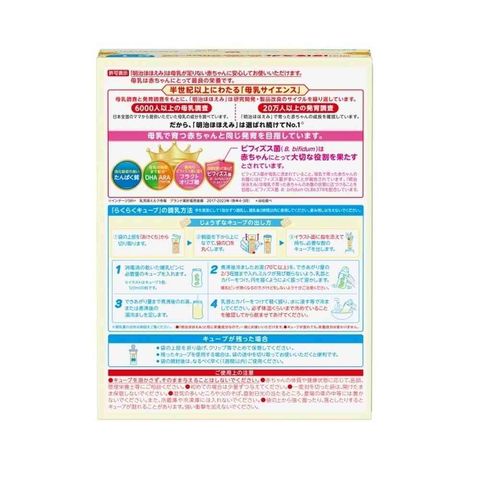 乳糖(アメリカ製造)、調整食用油脂(豚脂分別油、大豆白絞油、パーム核油、精製魚油、アラキドン酸含有油脂)、乳清たんぱく質、バターミルク、フラクトオリゴ糖、カルシウムカゼイネート、デキストリン、脱脂粉乳、食塩、ビフィズス菌液、酵母