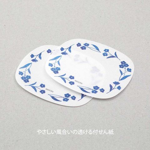 ミドリ 透ける付せん紙 青い花柄 24枚入