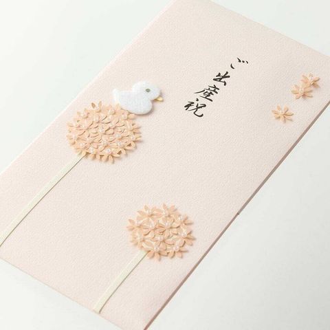 ハンドメイドのクラフトシールがかわいらしい、ふんわりとした優しい雰囲気の祝儀袋です。