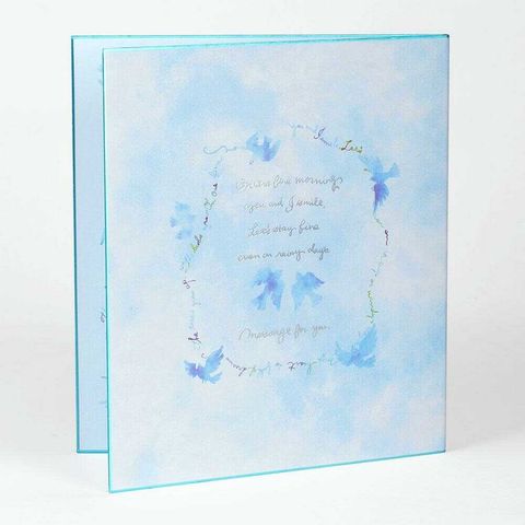 幸せの青い鳥をあしらった、門出を祝うのにふさわしいデザイン。