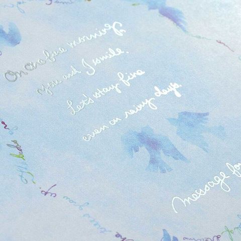 開くと一般的な色紙の2倍のスペースで、たっぷり寄せ書きを書いたり、写真やシールを貼ったりと自由にお使いいただけます。