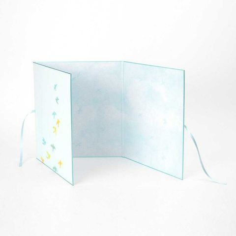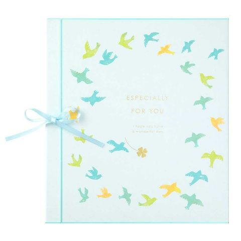 紙に取り付けられたサテンリボンを結ぶと、そのまま贈れるメモリアルなギフトが完成。