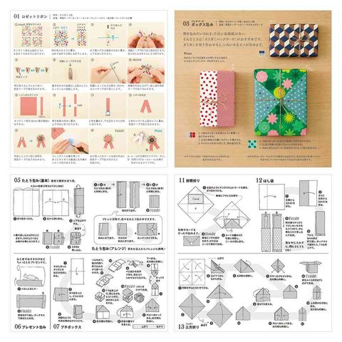 プレゼント包み、封筒折り、はし袋など、暮らしを彩る13種類の折り方付き。