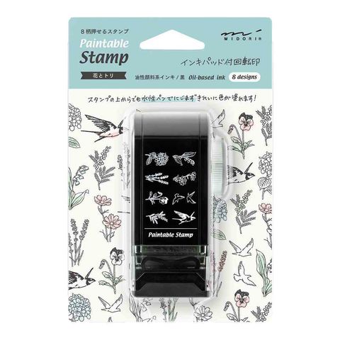 ミドリ スタンプ 回転印 ダイヤル 花とトリ柄 1個