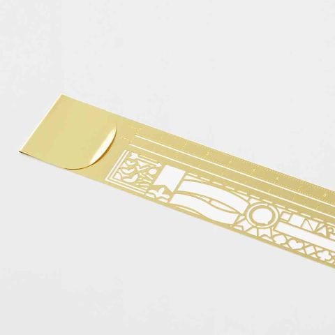 手帳やノートにクリップできる、テンプレート付き薄型真鍮定規です。