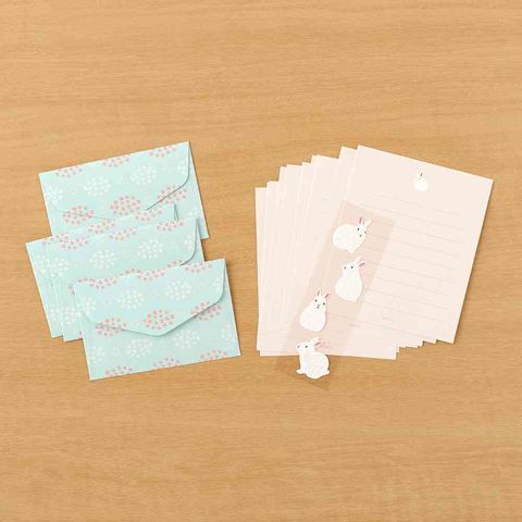 ミドリ ミニレターセット514 シール付 うさぎ柄A 便箋/12枚入、封筒/4枚入、シール/1シート入