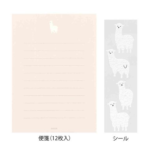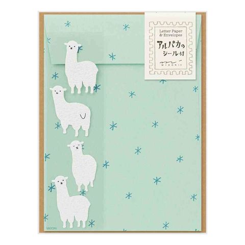 ミドリ レターセット636 シール付 アルパカ柄B 便箋/12枚入、封筒/4枚入、シール/1シート入