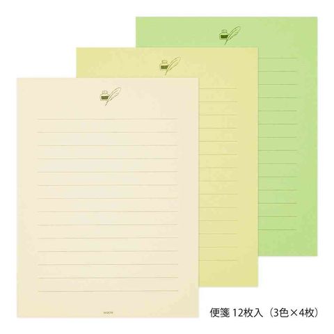 ミドリ レターセット916 色を贈る 緑 便箋/12枚入(3色×4枚)、封筒/4枚入
