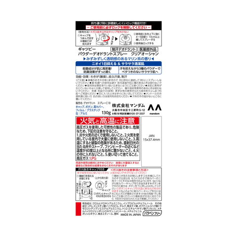 【医薬部外品】ギャツビー パウダーデオスプレー クリアオーシャン 130g