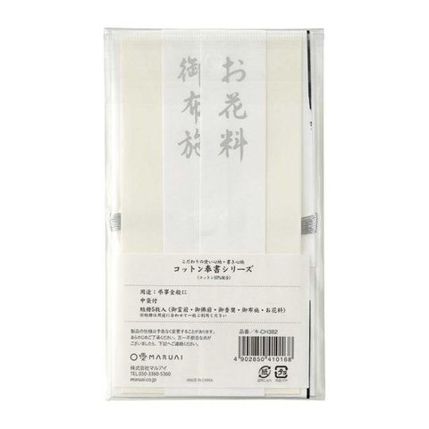 マルアイ コットン仏金封 総銀10本 1枚(中袋付/短冊5枚入)