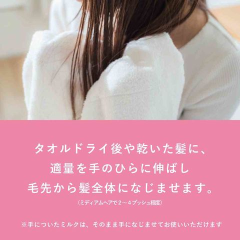 〇髪に塗布後、手についたミルクは、そのまま手になじませてお使いいただけます。