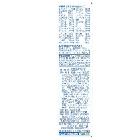 乳成分:60.7g、調整脂肪:18.2g、可溶性多糖類(デキストリン)16.0g、その他(ビタミン、ミネラル、水分):5.1g