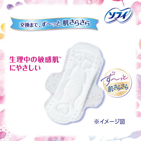 はだおもいは、生理中の敏感肌にやさしいナプキンです。 その理由は、長時間吸収力が持 続して、交換まですっぴんのようなサラサラ感がつづく。