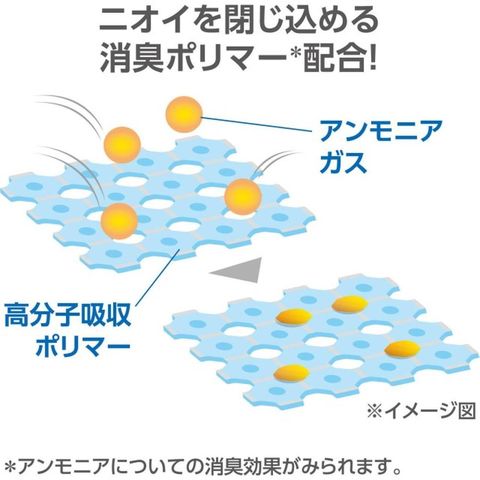 ●ニオイを閉じ込める、消臭ポリマー配合。(※アンモニアについての消費効果がみられます。)