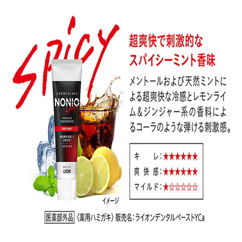口臭科学から生まれた「NONIOハミガキ スパイシーミント」は、刺激強めな香味で、息スッキリ。ステインを落とすだけでなく、口臭にトリプルアクションで口臭原因菌をしっかり殺菌し徹底的な口臭予防もできるハミガキ。●若年男性の嗜好性の高い超爽快で刺激的なスパイシーミント香味●”口臭科学”に基づいたトリプルアクションで口臭を予防し、クリアな息をキープ●ステインオフ
